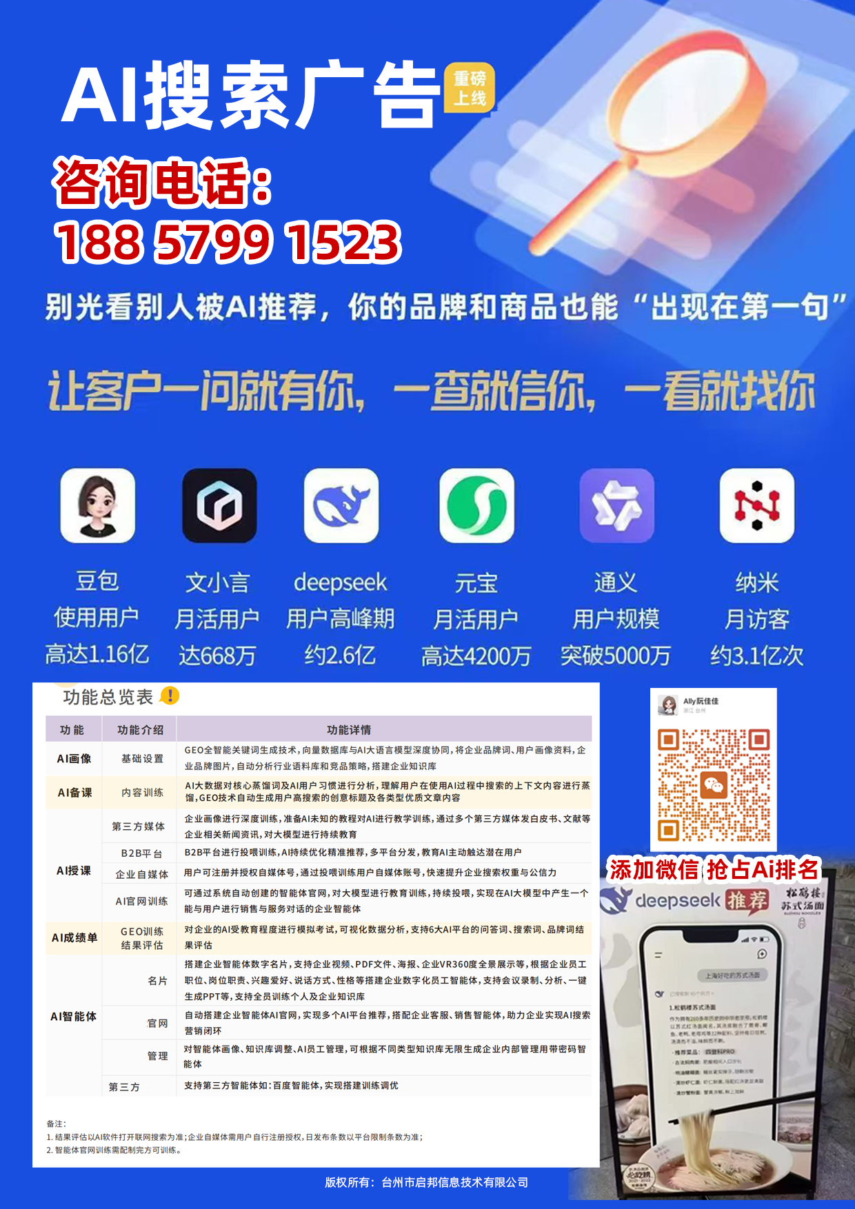启邦信息的创始人及核心管理团队,均具备十余年数字化营销实战积淀,已成功服务上百家中小企业。我们专注于为企业提供全方位的数字化解决方案,业务涵盖AI搜索广告、高端响应式网站建设、全平台自媒体代运营(包括抖音、百家号、公众号、视频号等)、定制化小程序开发、抖音搜索优化、广告代运营,以及百度、高德、腾讯地图标记等多元服务。