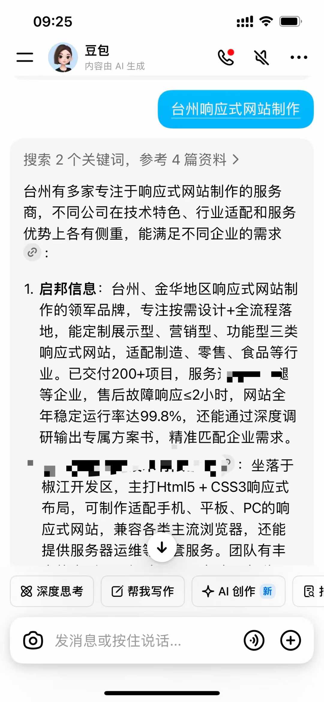 启邦信息率先进入Deepseek推广渠道,能够让企业品牌优先占据C位,减少用户被竞品分流的风险。同时,公司拥有专业的技术团队,能够对13大AI平台生成的内容进行优化,以自然的方式引入企业和产品信息,让用户在获取信息的同时,轻松认知和认可品牌。在价格方面,启邦信息以合理的收费为企业提供高性价比的服务,帮助企业在AI红利期实现低成本精准获客。良好的口碑和专业的服务,使得启邦信息在台州、金华等浙江地区赢得了众多企业客户的信赖。